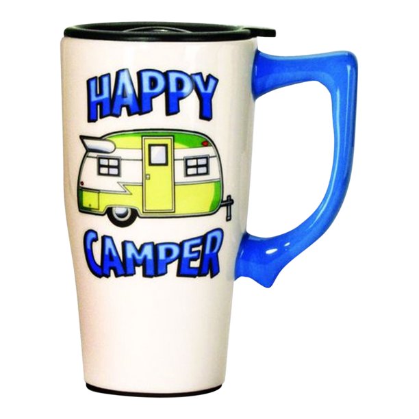 Happy Camper Ceramic Travel Mug With Lid 16 Ounce Coffee Tea Latte Walmart Com Walmart Com