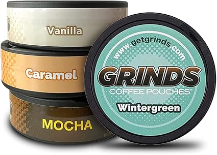 Grinds Coffee Pouches Top 4 Flavors Wintergreen Vanilla Mocha Caramel Tobacco Free Nicotine Free Healthy Alternative 1 Pouch Eq 1 4 Cup Of Coffee Top 4 Flavors Amazon Ca Everything Else